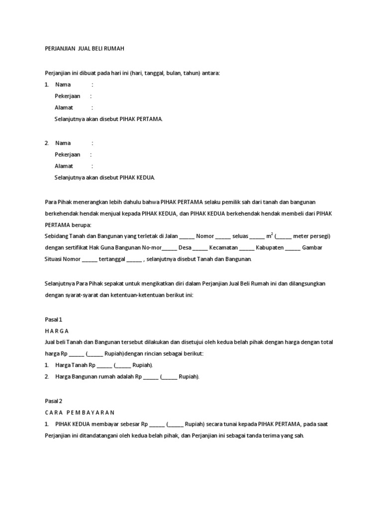 Demikian surat perjanjian jual beli rumah ini dibuat dengan penuh kesadaran dan tanpa paksaan antara para pihak dan supaya dipatuhi sebagai hukum yang mengikat para pihak. Sebelum melakukan transaksi jual beli hunian, jangan lupa membuat surat perjanjian terlebih dahulu, ya. Pada artikel kali ini kita akan membahas mengenai cara membuat dan contoh surat perjanjian jual beli rumah sederhana. Padahal, surat perjanjian jual beli rumah dan akta jual beli rumah merupakan penanda keberhasilan dan kepuasanmu pasca transaksi berbeda dengan ajb, surat perjanjian jual beli rumah adalah sebuah surat perjanjian yang mengikat antara penjual dan pembeli yang saling. Surat perjanjian jual beli tanah besert rumah yang bertanda tangan di bawah ini :